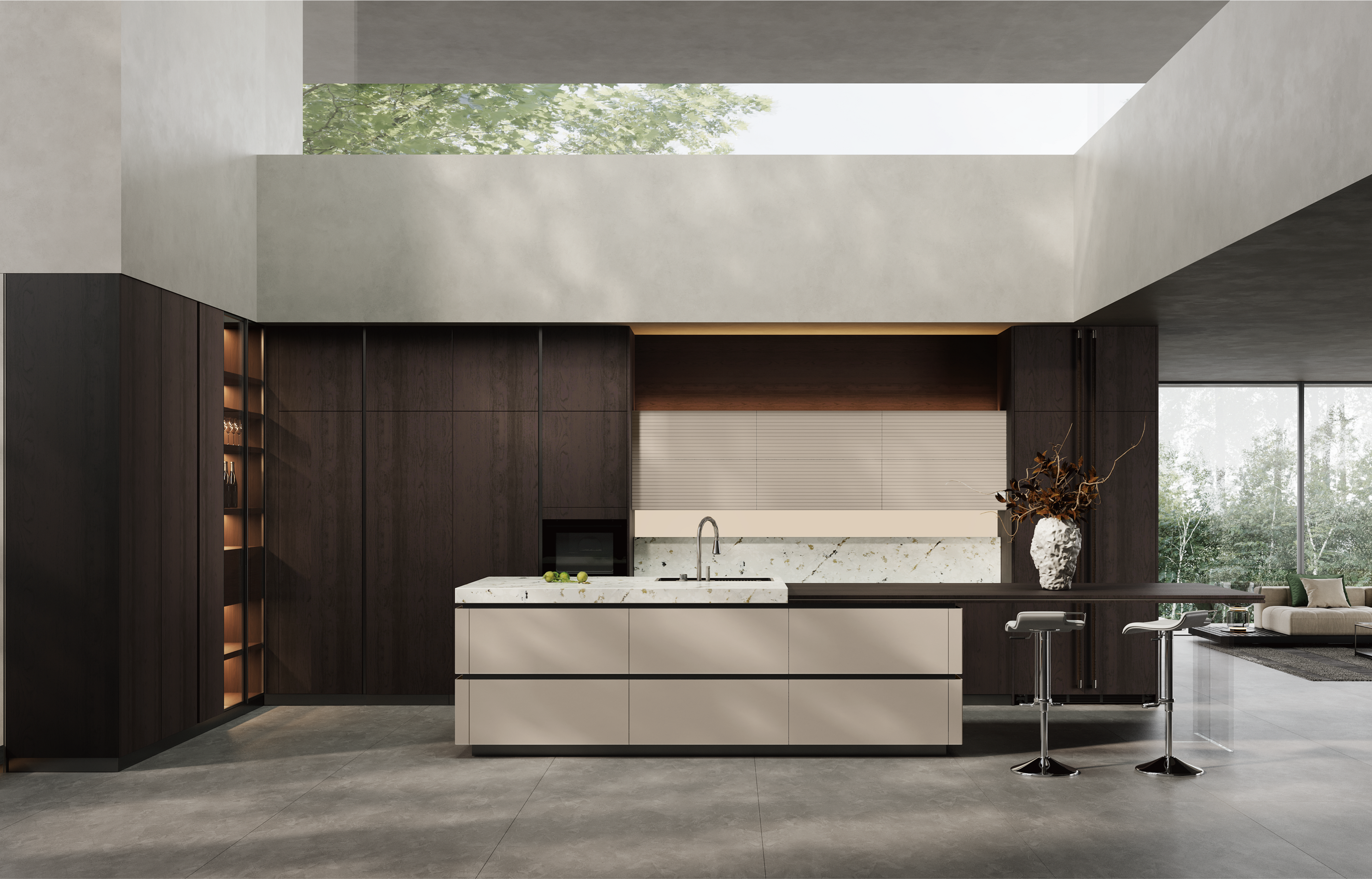 通过IM电竞厨柜量体裁柜,定制出适合主厨下厨的烹饪区和洗涤区的舒适高度。